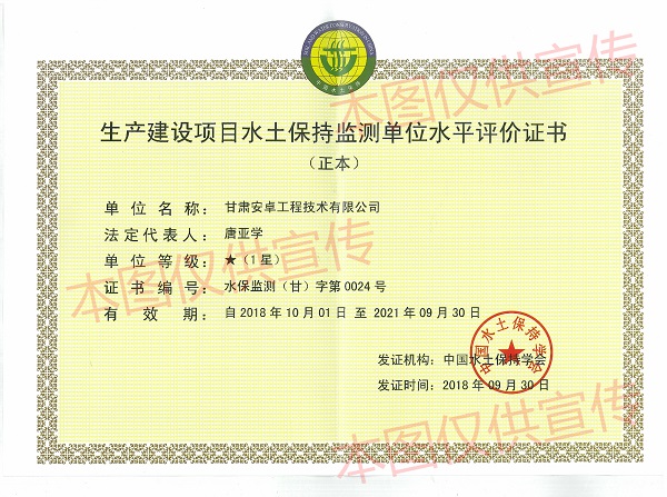 【水保資質】生產建設項目水土保持監測單位水平評價證書