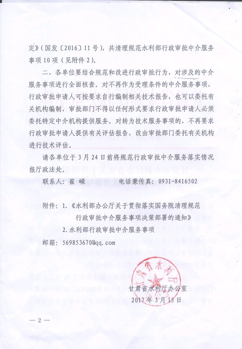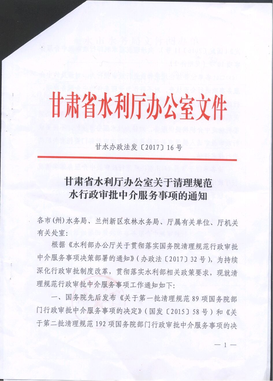 甘肅省水利廳辦公室關于清理規(guī)范 水行政審批中介服務事項的通知